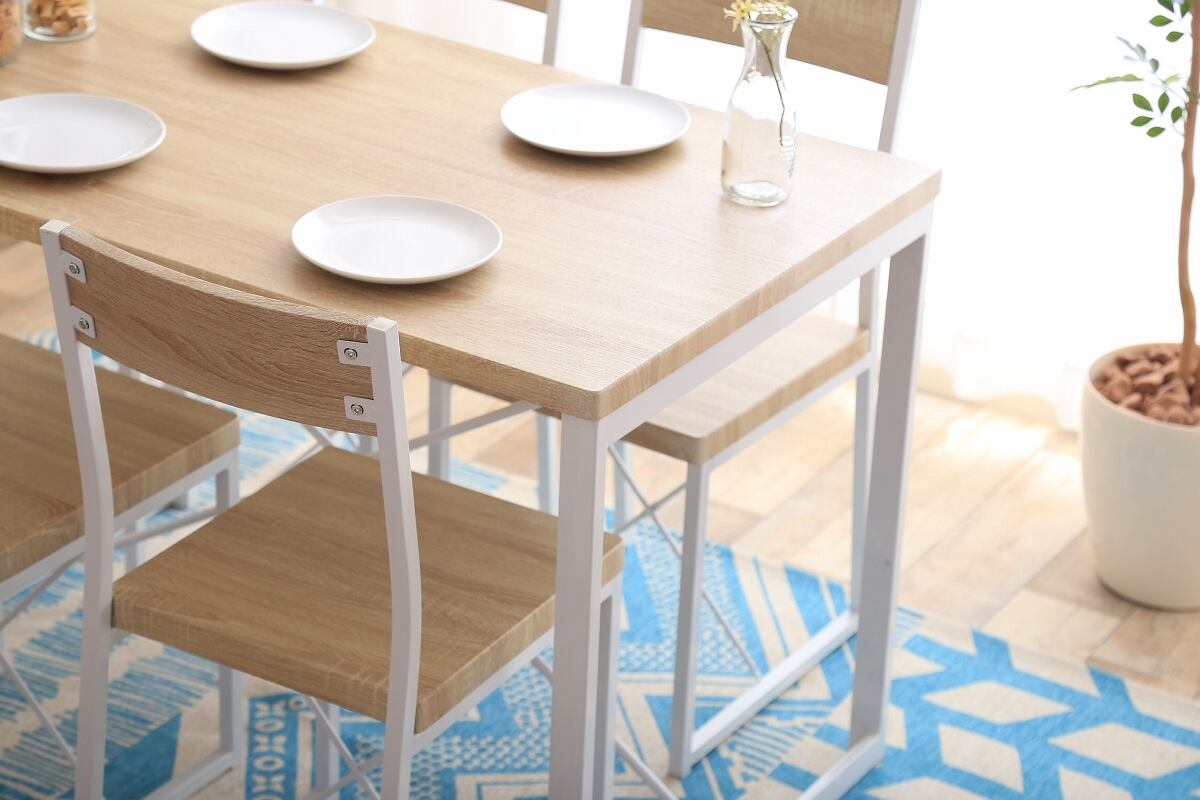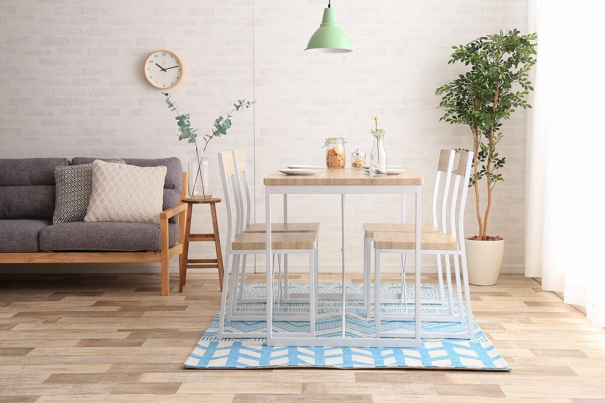 毎日の食事やティータイムにピッタリなシンプルデザインのダイニング5点セット。テーブルはワイドサイズなので様々な場面で使えます。チェアは見た目のオシャレさはもちろん座り心地も良く、リラックスタイムをより快適にすること間違いナシのアイテム。家族団らんやホームパーティなどできっと活躍しますよ♪カラーはホワイトとブラックの2色をご用意しております。普段の食卓をより魅力的に、楽しい空間へ変えてみませんか。