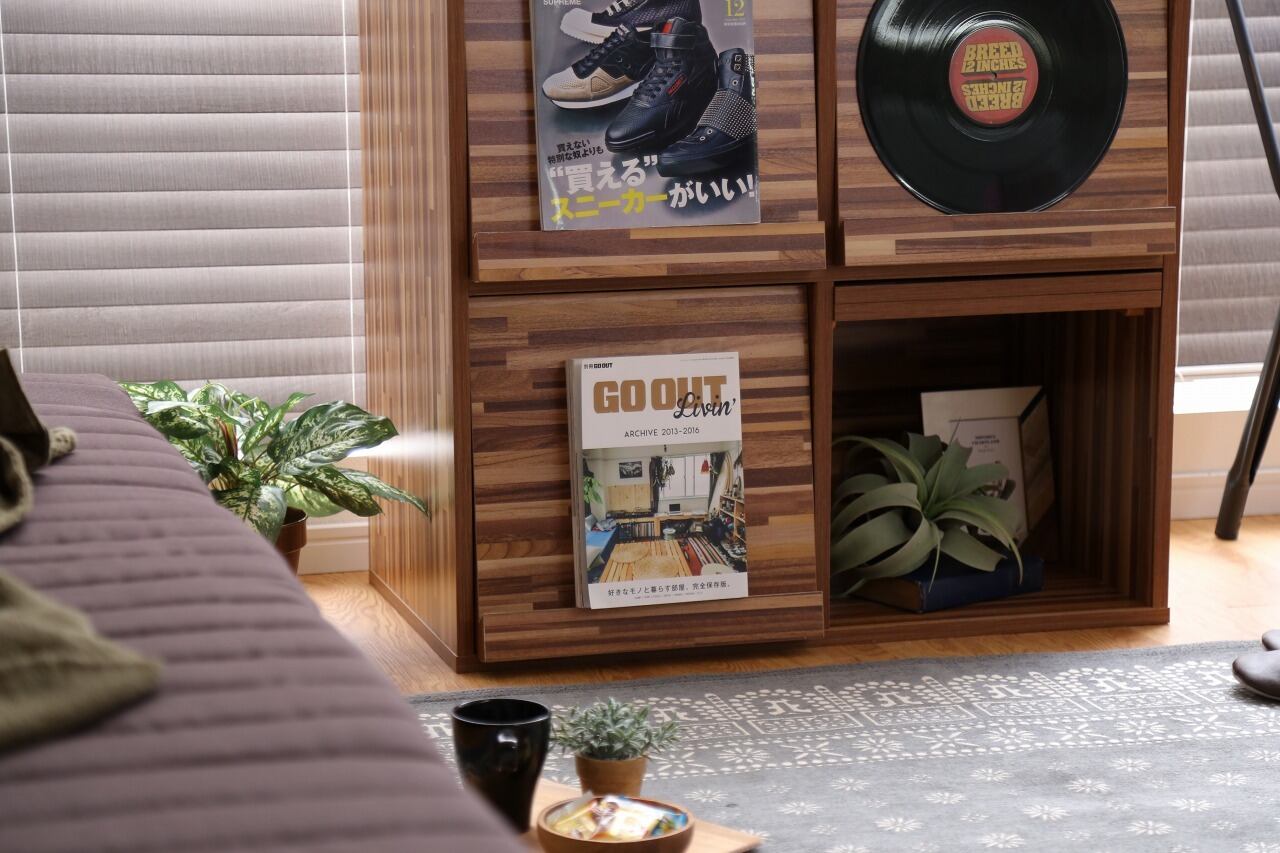 オシャレにディスプレイしながら、収納もしっかりできる”Brick”マガジンラック。複数の異なる木材を使ったかのような寄木柄は、それぞれ濃淡差を活かす組み合わせになっており不規則ながらもまとまりを感じるデザインとなっています。置くだけでお部屋のアクセントにもなりますよ♪スリムなので場所を取らずワンルームなどのスペースが限られるお部屋に置いても圧迫感を感じません。4つの収納スペースがお部屋の散らかりを解消してくれるのでスペースを広く使うことができます♪