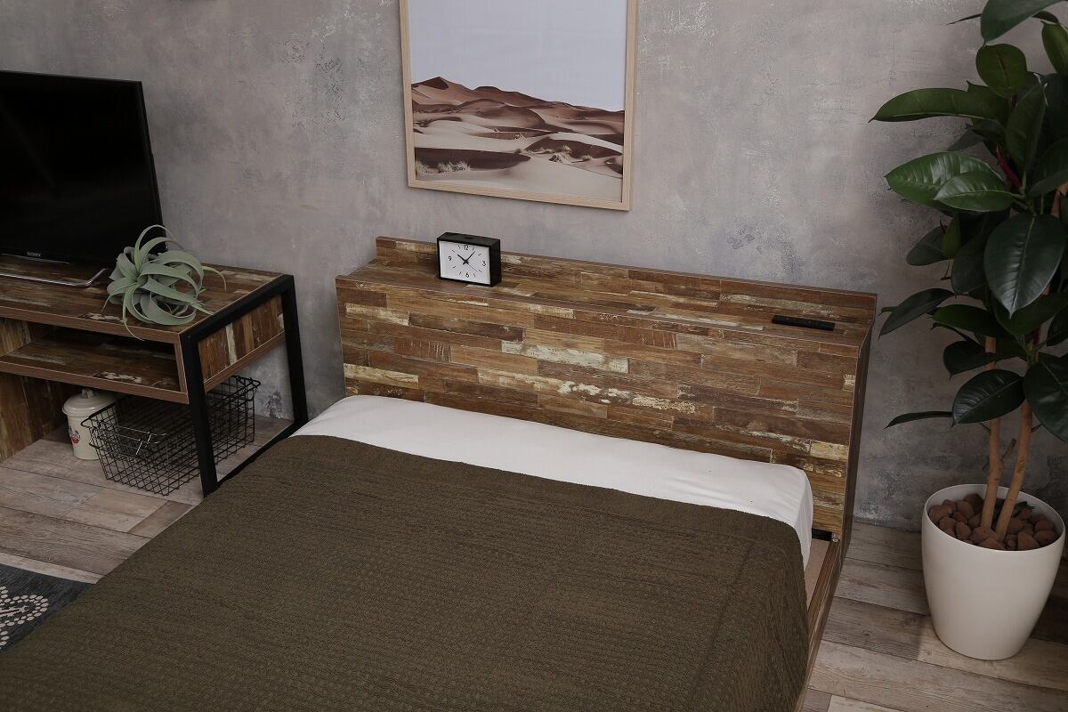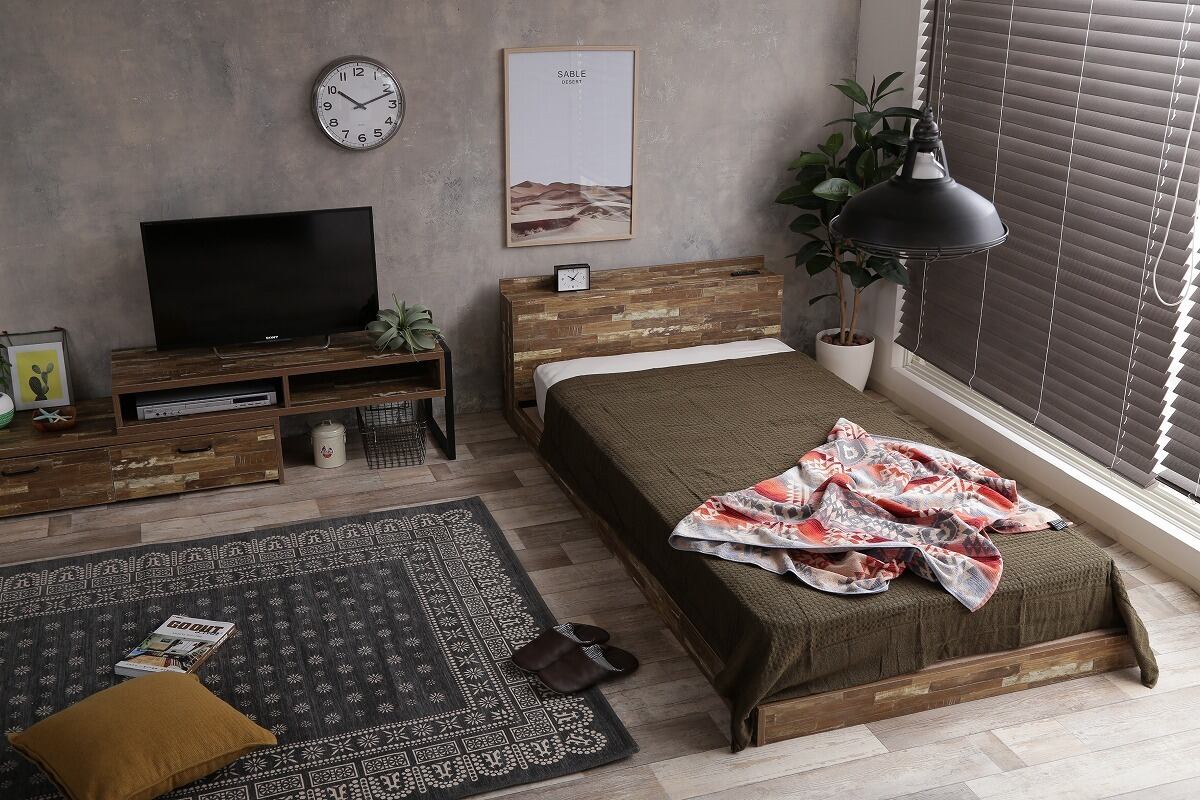 存在感抜群の人気のローベッドです。存在感のあるお洒落な寄木柄がポイント♪ロースタイルなので圧迫感がなく一人暮らしの方などお部屋を広く使いたい方にはおすすめの商品です!小物置きに便利な宮棚やコンセントも付いているので枕元で携帯の充電ができるのも嬉しいですよね♪