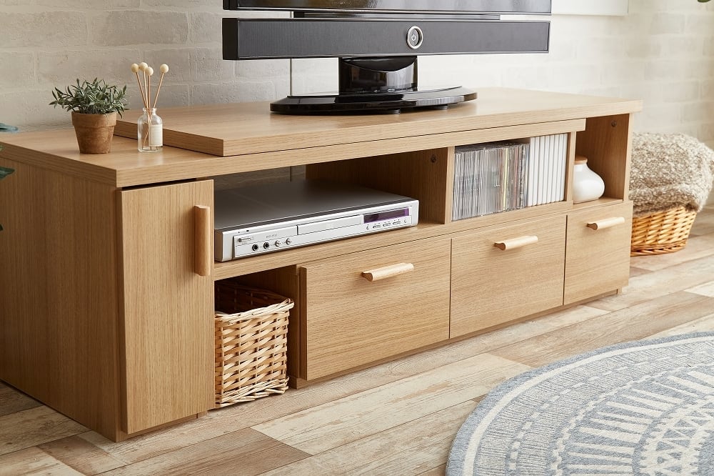 大人気のテレビボード。お部屋の広さやテレビサイズに幅広く対応出来る、伸縮型ローボード!収納力抜群で、リビング周りをスッキリさせるテレビボードです。